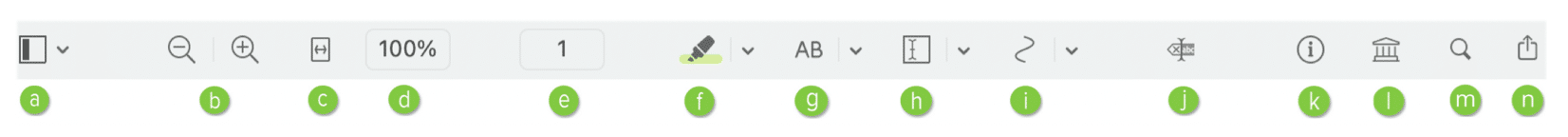 Visible by default, hide and reveal the toolbar by choosing View > Hide Toolbar (Command+Shift+B). Kofax Power PDF for Mac provides a set of default toolbar items.