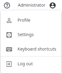 The user menu button is located in the upper right corner of the main window. Click the button to open a drop-down menu.