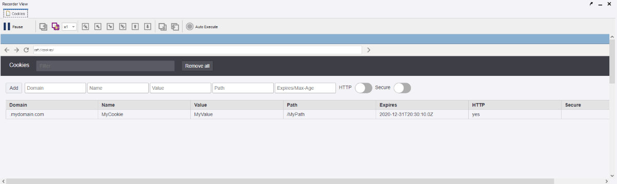 Use the Robot's built-in browser to monitor, add, or delete cookies from the CookieStore.
