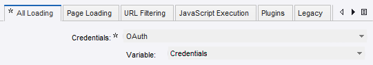 - On the All Loading tab, locate Credentials and switch it from Standard user name/password authentication to OAuth.