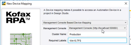 To execute the Robot on two computers with the DAS, create two device mappings with different labels in Management Console.