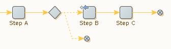 Because of this blurred boundary between conditional execution and error handling, Design Studio provides both features in a unified way. For every step, you can configure what to do in case an error occurs. Furthermore, steps with a test action (based on a condition of some sort) reuse the same approach, meaning that if the condition is not met, the (default) action is applied as if an error occurred.