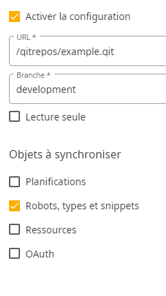 4. Sous Objets à synchroniser, sélectionnez les objets à inclure dans la synchronisation. Robots, Types et Snippets