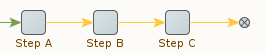 L'effet est d'ignorer l'exécution des étapes après l'étape B si elle rencontre une erreur. Le même effet peut être obtenu sans l'étape « Tentative » en utilisant l'option de traitement des erreurs « Ignorer les étapes suivantes » (qui est la valeur par défaut), de la manière suivante.