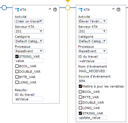 ID du travail : Précisez l'ID de l'activité Créer un travail dans l'étape KTA.