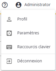 Le bouton du menu utilisateur est situé dans le coin supérieur droit de la fenêtre principale. Cliquez sur le bouton pour ouvrir un menu déroulant.
