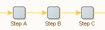 Ce robot se compose de trois étapes : Étape A, Étape B et Étape C. En supposant qu'aucune erreur ne se produise et que chaque étape génère exactement un état de sortie du robot, le robot est exécuté comme suit : Un état initial du robot est généré et utilisé comme entrée à l'étape A (la première étape). L'étape A produit un état de robot de sortie. Cet état de robot de sortie est l'état de robot d'entrée de l'étape B. De même, l'étape B produit un état de robot, qui est l'état de robot d'entrée de l'étape C. Une fois que l'étape C a exécuté et produit un état de sortie de robot, l'exécution se termine. En bref, l'exécution des étapes est décrite comme suit : « A, B, C. »