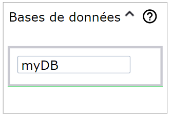 Un nom de base de données doit être défini dans la section Bases de données du graphique du robot, tel que myDB dans l'exemple suivant. Le mappage de base de données auquel le nom fait référence est celui auquel le nom de la base de données est attribué lorsque le robot est appelé.