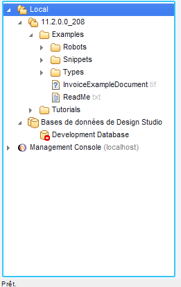 Le dossier Local présente une structure arborescente qui se développe et se réduit, représentant les projets locaux et les bases de données ouverts dans Design Studio. Cliquez sur