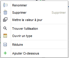 Faites un clic droit sur une définition, un paramètre ou le volet Définitions de robot pour afficher le menu contextuel.