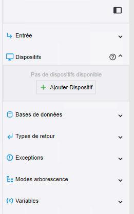 Dispositifs : définissez les dispositifs requis utilisés par le robot.