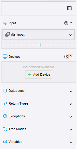 Cliquez sur les signes d'insertion haut et bas pour développer et réduire chaque définition et les éléments associés. Le signe d'insertion doit être visible pour ajouter et afficher des définitions et pour accéder aux rubriques de l'Aide de Kofax RPA en cliquant sur le symbole ? pour accéder directement à la rubrique associée.