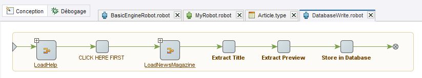 - L'éditeur de robot dans lequel vous éditez un robot.