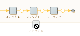 • 分岐ポイント、ステップ B、ステップ C およびステップ C の後の終了ステップ。