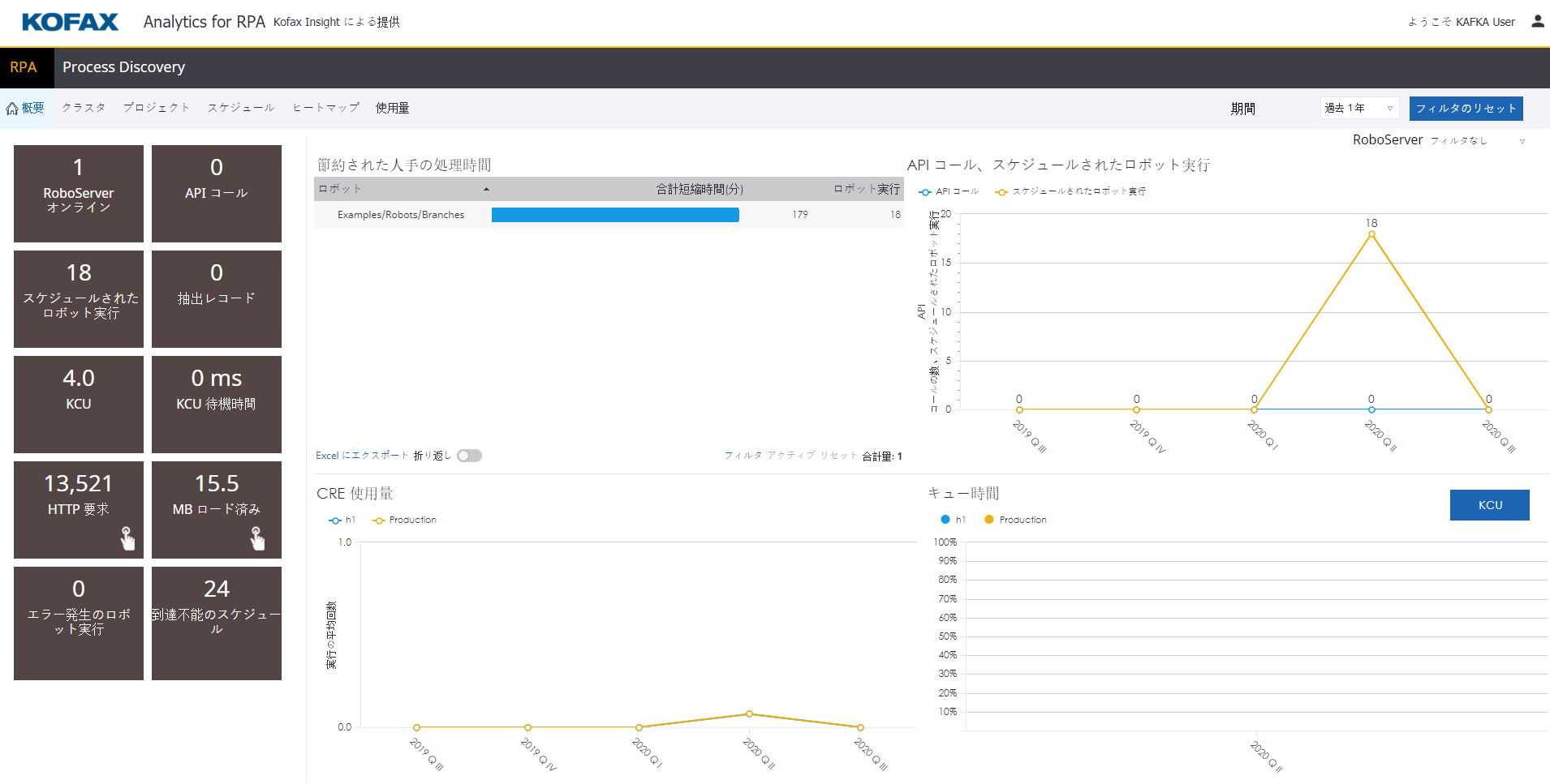 - [期間] リストの時間と、[RoboServer] リストでロボットが実行されている RoboServer でレポートをフィルタリングできます。