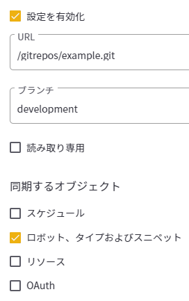 [同期するオブジェクト] で、同期に含めるオブジェクトを[ロボット、タイプおよびスニペット] から選択します。