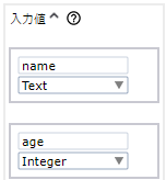 - 新しい入力パラメータを追加するには、プラス記号をクリックした後に、名前を入力してタイプを選択することでパラメータを設定します。