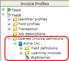 Opened document definitions are displayed in the Opened document definitions folder. To display them and work with them there: