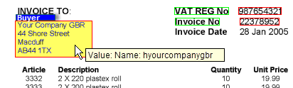In Verify, you can position the mouse over the buyer field on the invoice image to display a tool tip, which shows the information that was used to identify the buyer