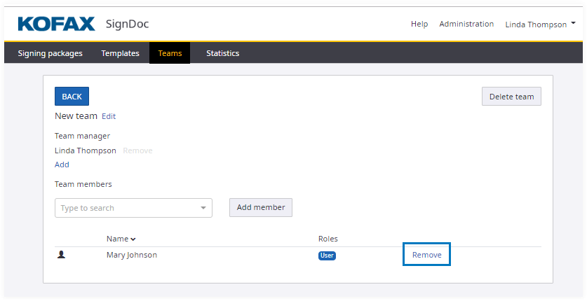 This functionality is only available when accessed by SignDoc Standard user who is assigned to the team manager role for this team, or who is an account administrator.