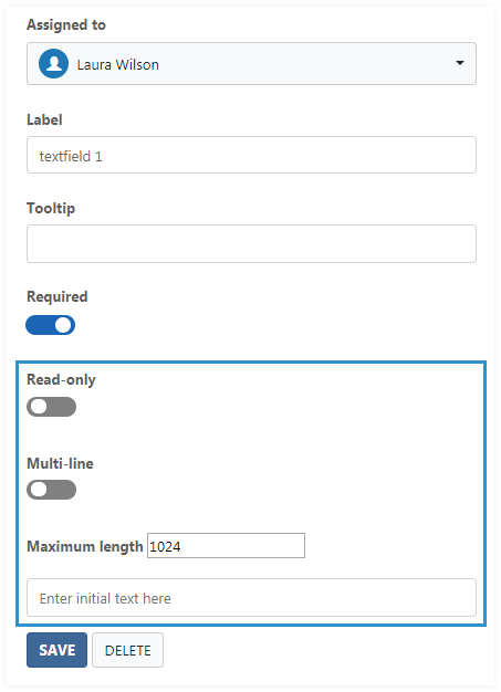 Use text fields to collect user text input. In addition to basic properties, you can also set these options: