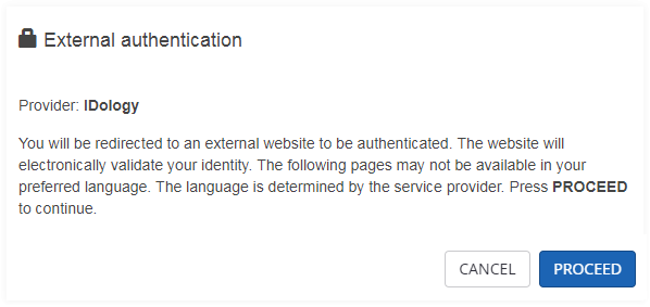 When clicking Proceed, the recipient is forwarded to the web page of the external authentication provider. After finishing the external authentication process, the recipient is taken back to the remote signing session.