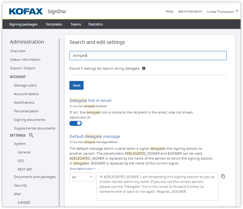 If you click the title of a setting, the setting's category page opens where you can see the setting in its normal context.