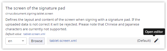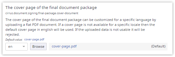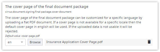 Use to upload a file from file system to the current account by clicking Browse. The term "(Default)" indicates that the default file is used. A file can be downloaded by clicking the file name. When uploading a file to the current account, a Delete icon is available to revert to the default file. Some of these file settings are also localizable. Localizable file settings behave similar as localizable strings. See Working with localizable strings for more information.