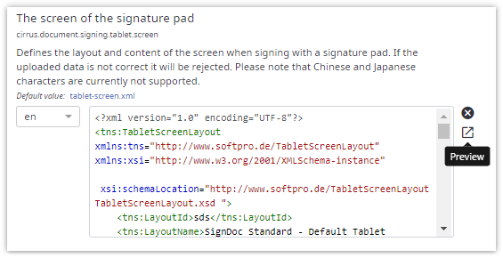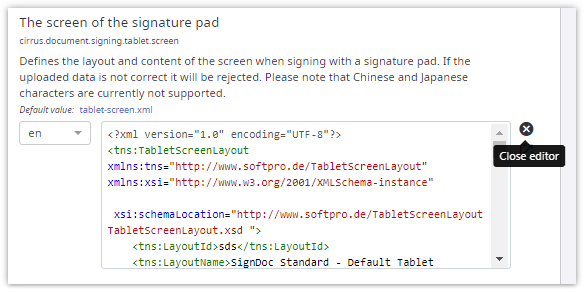 For xml files an inline XML editor is displayed when a user clicks the Open editor button. The XML editor supports: