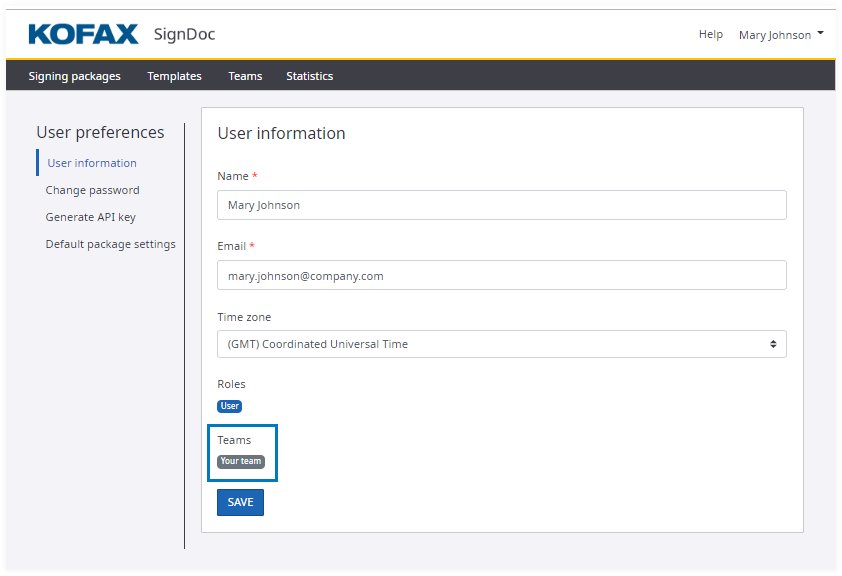 SignDoc Standard enables account administrators to create teams and to assign the team manager role to users.