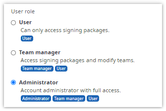 A user with the Administrator role is able to administrate only a specific account, and does not have permissions to access other accounts on the server. The account administrator cannot log into the Administration Center and does not have permission to create accounts.