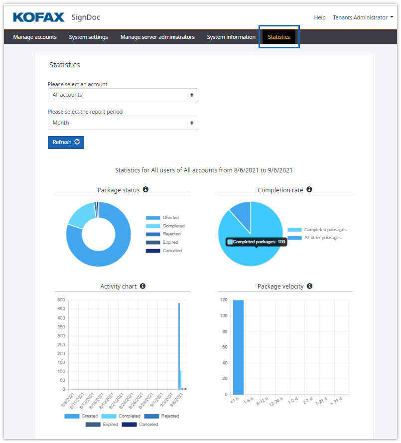 access to statistic reports on packages activity for all the system users for