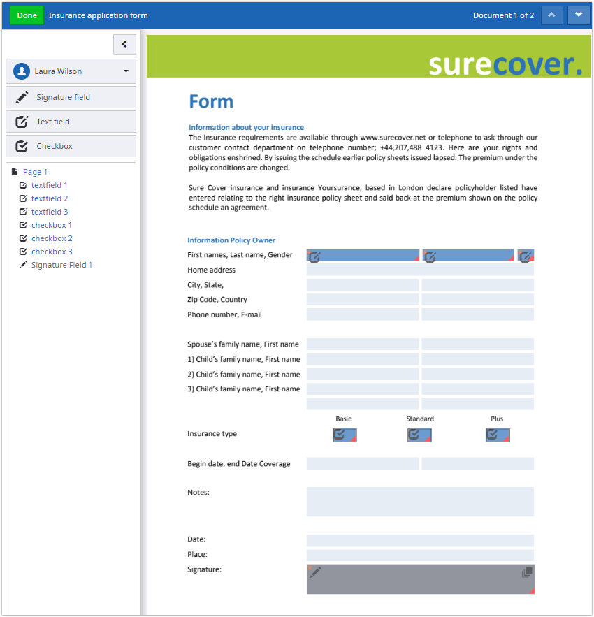 If set, the document is automatically prepared with one mandatory signature field for each signer when the upload is completed. The signature field is added to the first page of the document. The field can be manually moved anywhere within the document using the document editor. See Prepare documents.