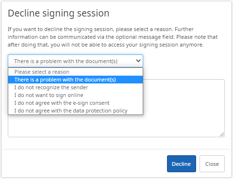 A recipient of a signing package can decline the review and sign process at any time.