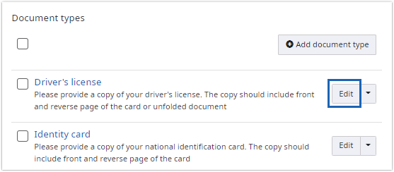 An account administrator can manage document types assigned to an account. A document type is a template which defines a group of supplemental documents.
