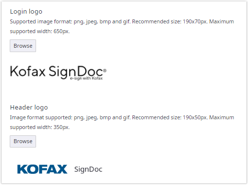 With the option Login logo, you can change the logo of the login screen. To do so, click Browse to locate the preferred image.