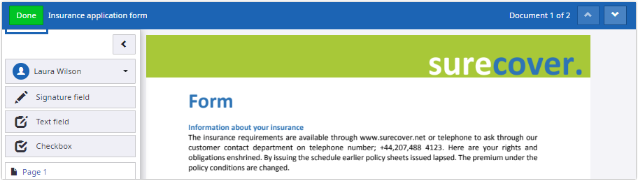 The Done button accepts the changes and brings the user back to the documents and recipients page.