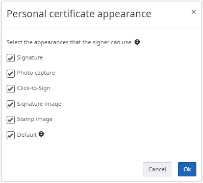 Similar to the signing methods, there are different options for how the signer can capture the appearance of a signature field when signing with a personal certificate.
