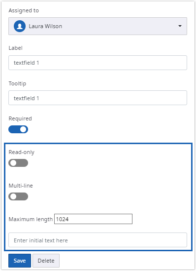 Use text fields to collect user text input. In addition to basic properties, you can also set these options: