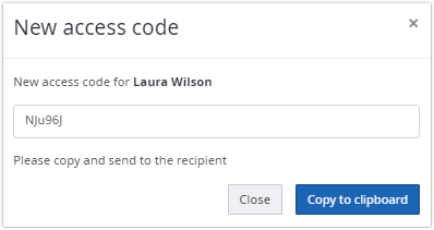 Click the Generate new Access Code link to display the dialog box with the new generated access code.
