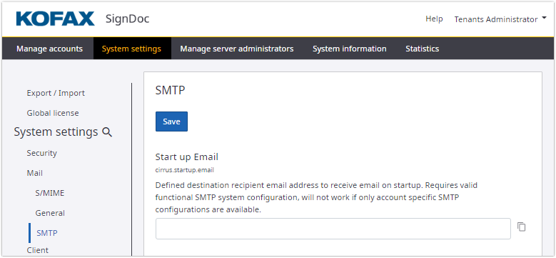 All SMTP related settings can be configured selecting SMTP in the Mail section.