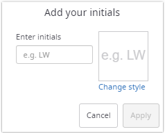 Now the recipient can click Apply to leave the dialog to use the entered initials in the selected style or click Cancel to leave the dialog without any changes.
