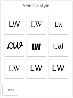 A style can be selected by clicking the corresponding tile. Clicking Back returns to the previous dialog without selecting another style.