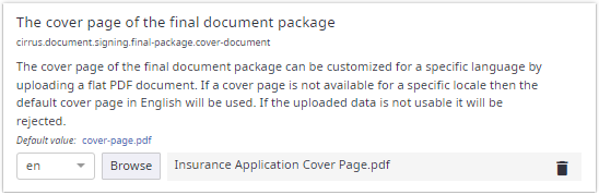 Use to upload a file from file system to the current account by clicking Browse. The term "(Default)" indicates that the default file is used. A file can be downloaded by clicking the file name. When uploading a file to the current account, a Delete icon is available to revert to the default file. Some of these file settings are also localizable. Localizable file settings behave similar to localizable strings. See Working with localizable strings for more information.