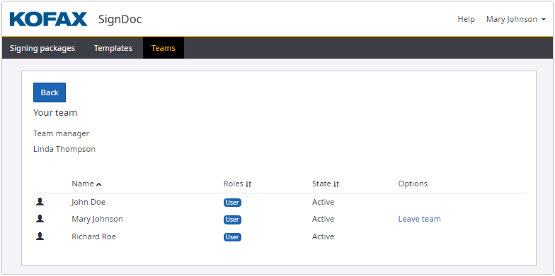 After leaving the team, the former team member can’t access the packages and documents of the other team members anymore and vice versa. Also, all team managers of the team will get an email notification that the user left the team.