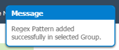 When a user successfully adds the regex pattern or regex group, a message is displayed in a floating message box.