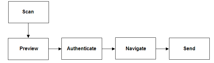 At the scanning device, the user follows the standard eCopy workflow to scan and send a document. If you configure a connector profile to use the Express function, users will not need to perform many of the steps included in the procedure in this section.