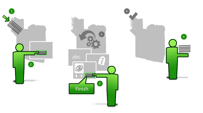 Use User data entry together with Background processing and its various options to construct efficient workflows for your MFP users. Proceed along these two basic lines: