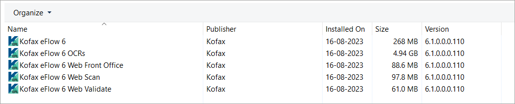 The build number for Kofax eFlow 6.1.0 is 6.1.0.0.0.110.